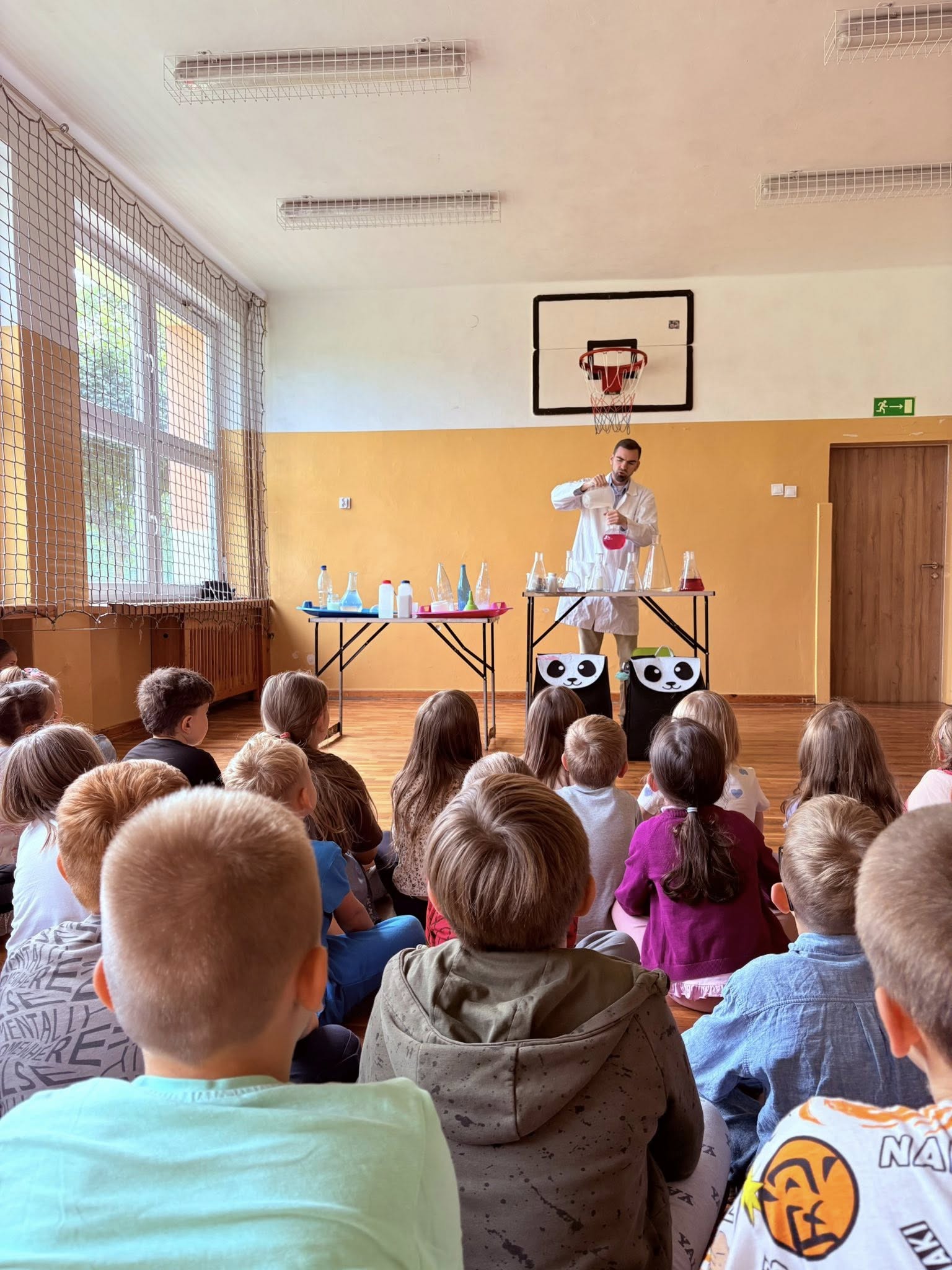 wrzesień 21, 202521 września 20250Pokaz chemicznyWAktualnościW czwartek 18 września uczniowie klas 0-3 wzięli udział w pokazie chemicznym, który według najmłodszej publiczności połączony był z pokazem magicznym. Uczniowie wyszli z pokazu zachwyceni, zadając sobie pytanie – „jak to możliwe?”